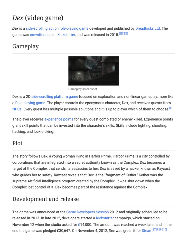 3. "Dex - Cyberpunk 2D RPG by Dreadlocks — Kickstarter" (http://www.kickstarter.com/projects/d