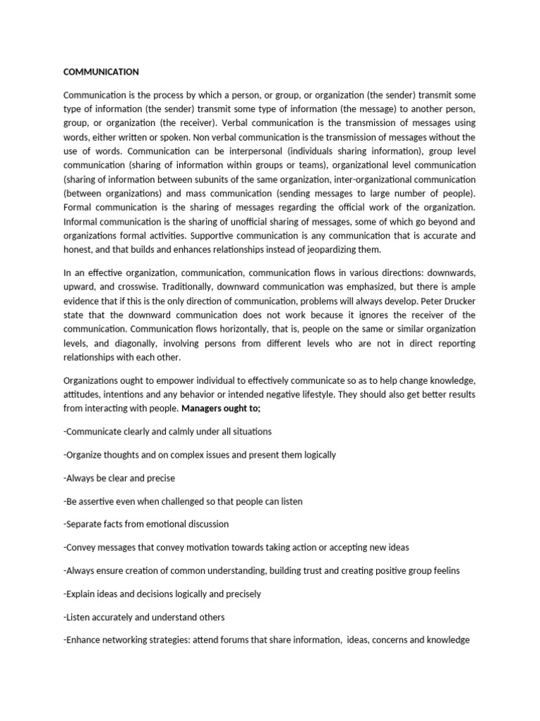 N.B: Always use the right channel to communicate, develop writing skills (MEMO, letter, circulars,