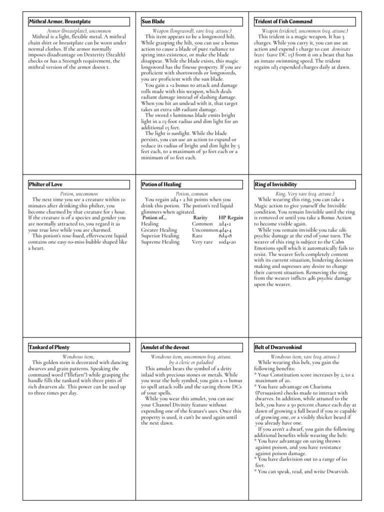 Wondrous item, Wondrous item, uncommon (req. attune. Wondrous item, rare (req. attune.)