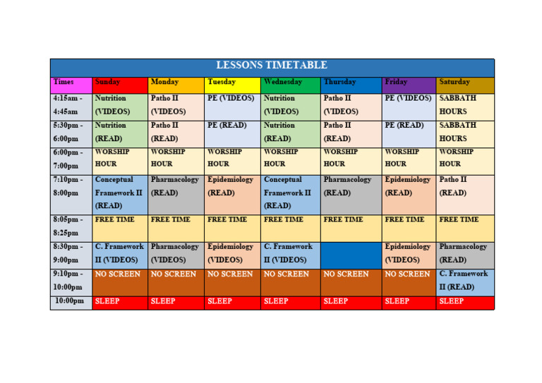 LESSONS TIMETABLE