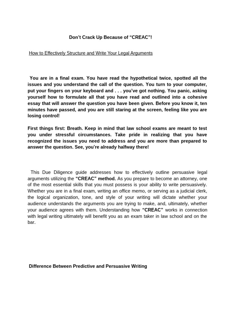arguments utilizing the “CREAC” method. As you prepare to become an attorney, one