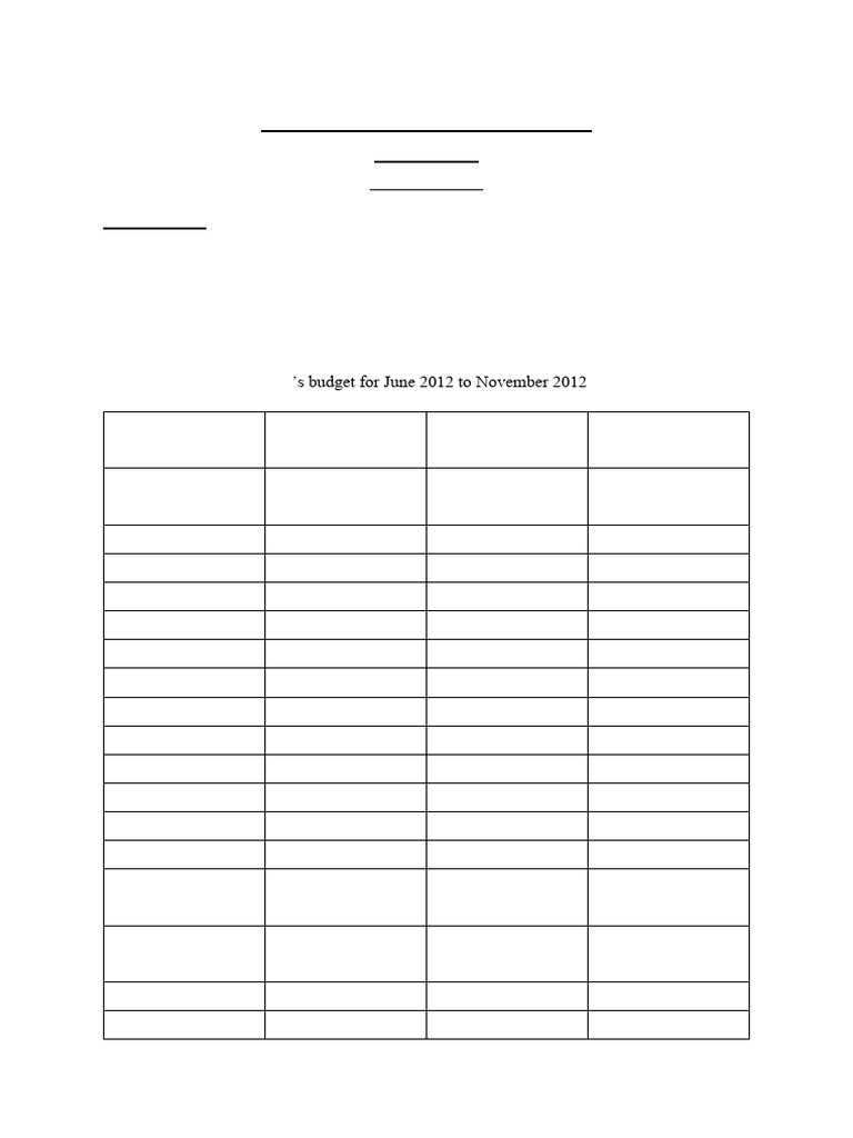 TABLE 1: The Ndlovu’s budget for June 2012 to November 2012