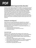 Specifications: Combined presentation, predominantly inattentive presentation, predominantly hyperactive-impulsive presentations; in partial remission.