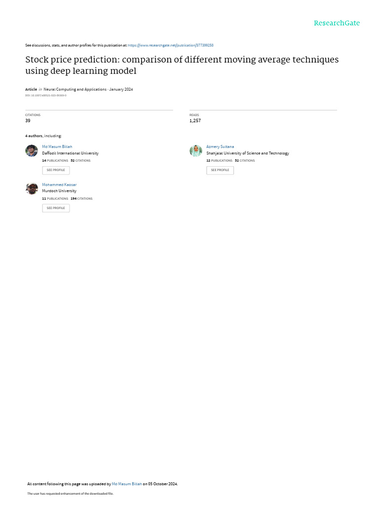 Keywords Stock price Simple moving average Exponential moving average Deep learning Machine learning