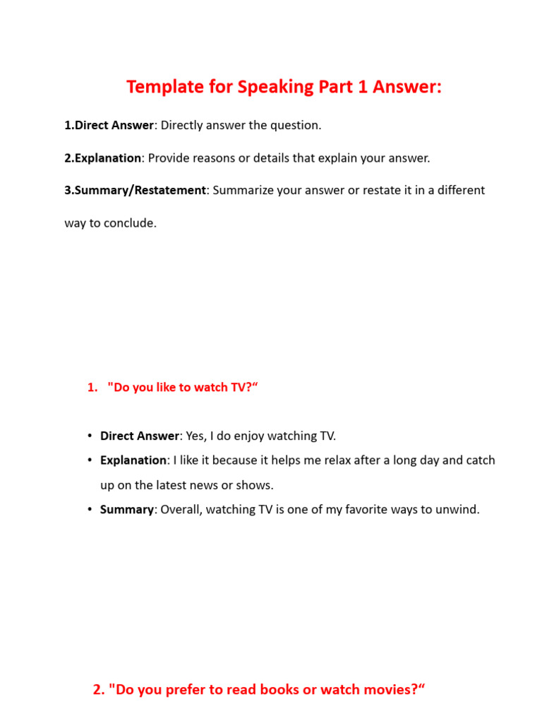 • Summary/Restatement: So, I would choose a house because I value space and peace.