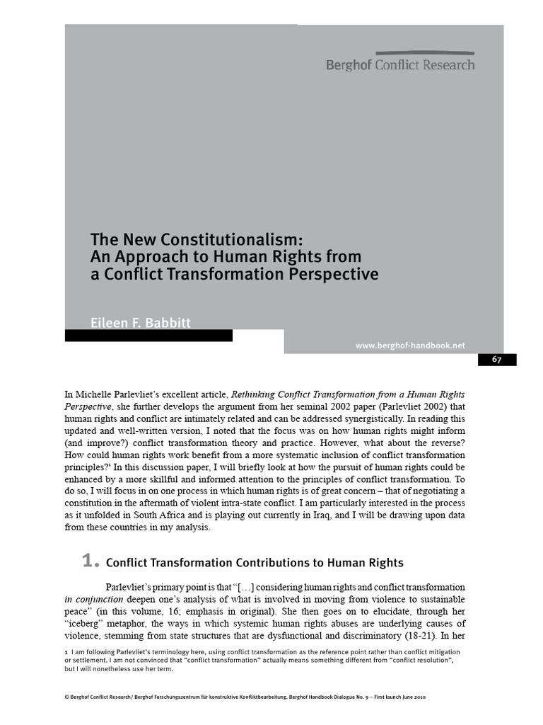 Babbitt, Eileen F. 2008. Conflict Resolution and Human Rights: The State of the Art, in: Jacob Bercovitch,
