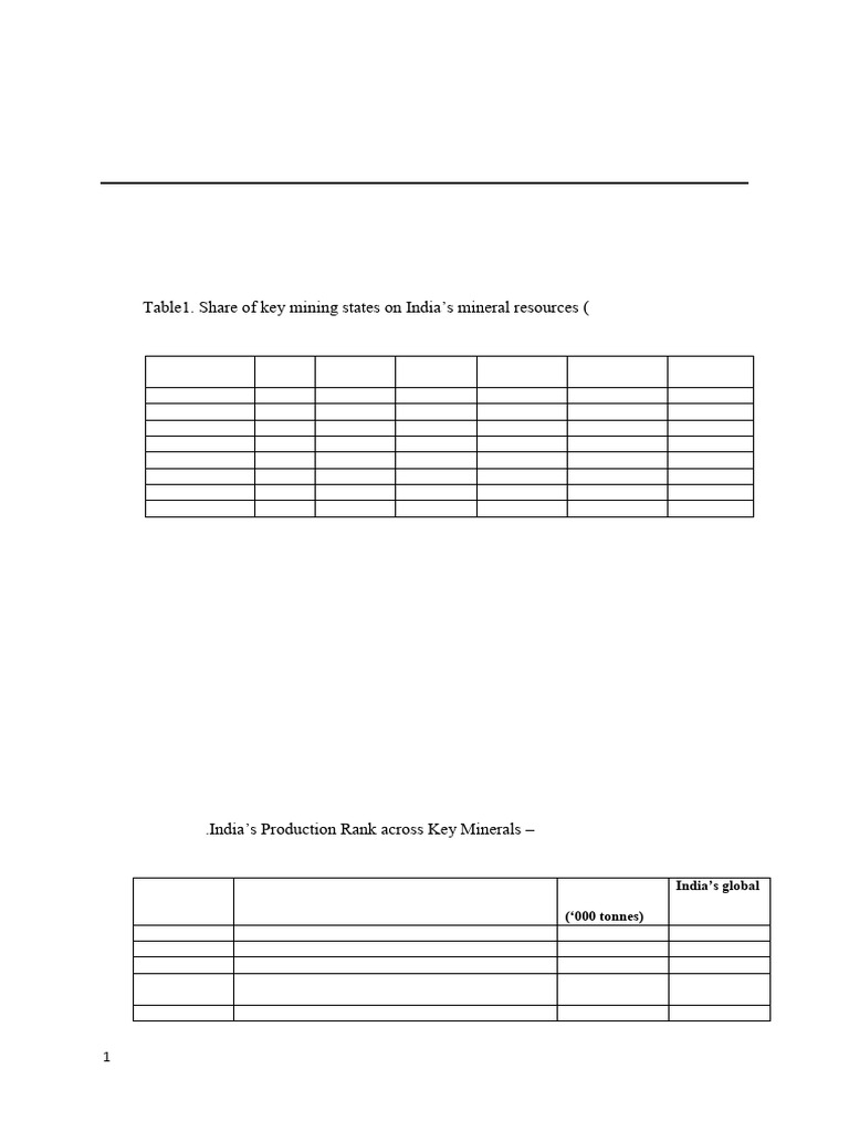 Table 2 .India’s Production Rank across Key Minerals – 2010 (Ministry of Mines, Government of