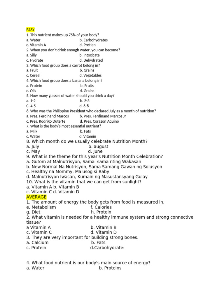 c. Water d. Vitamin