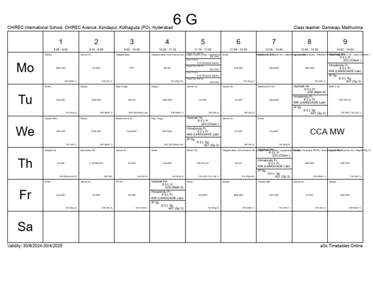 Validity: 30/6/2024-30/4/2025 aSc Timetables Online