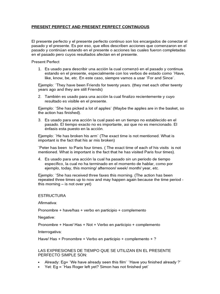 PRESENT PERFECT AND PRESENT PERFECT CONTINUOUS