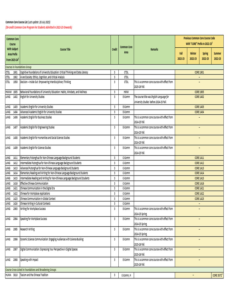 (30-credit Common Core Program For Students Admitted In 2022-23 Onwards)