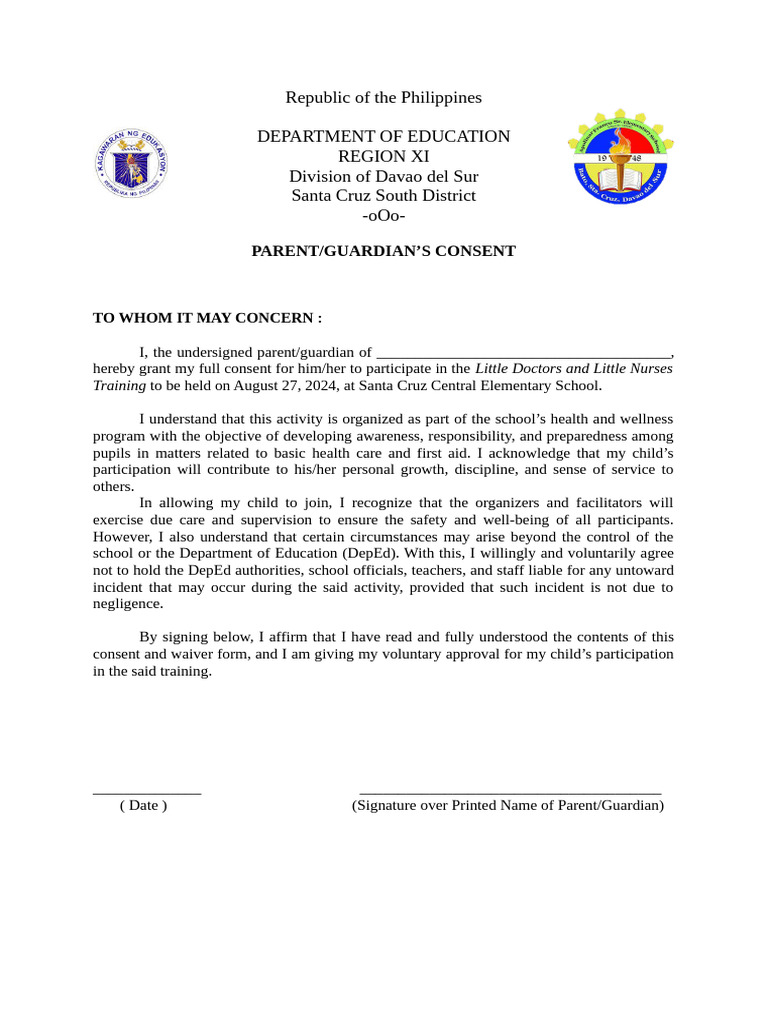 school or the Department of Education (DepEd). With this, I willingly and voluntarily agree