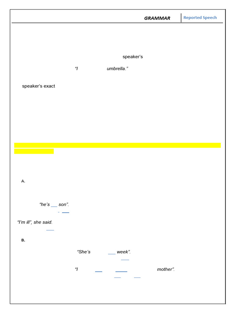 GRAMMAR Reported Speech