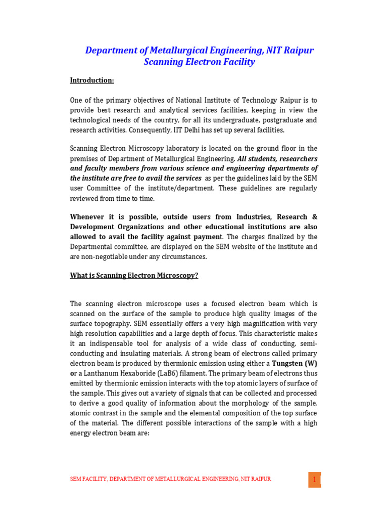 SEM FACILITY, DEPARTMENT OF METALLURGICAL ENGINEERING, NIT RAIPUR 1