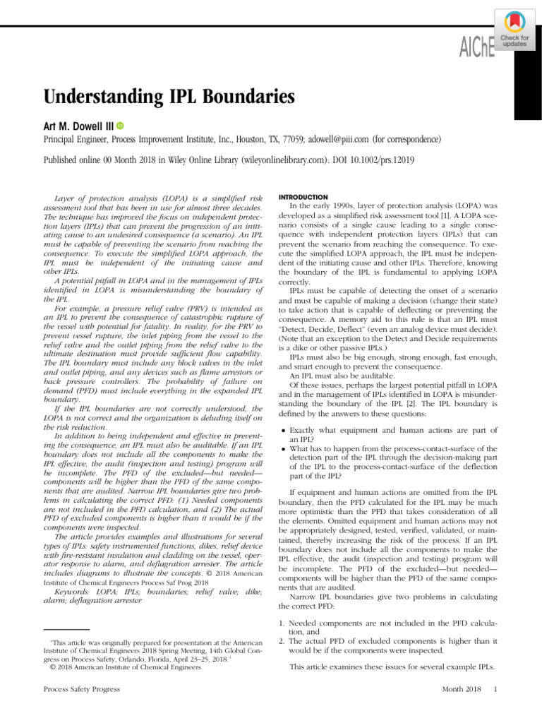 Keywords: LOPA; IPLs; boundaries; relief valve; dike; nents that are audited.