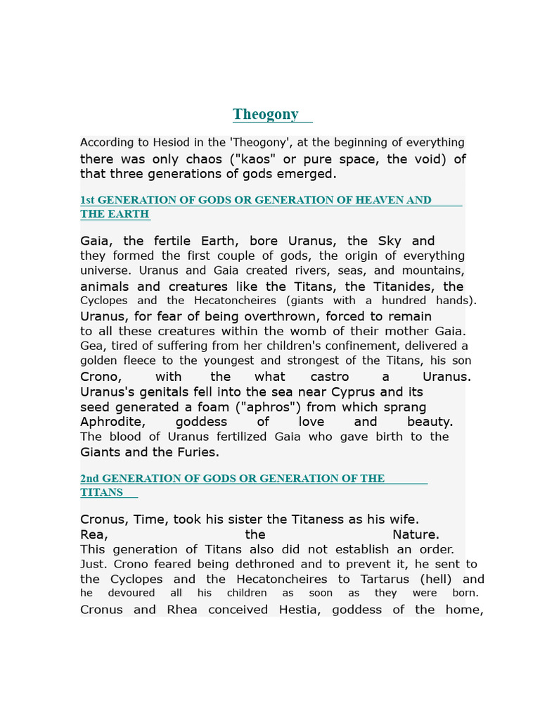 universe. Uranus and Gaia created rivers, seas, and mountains,