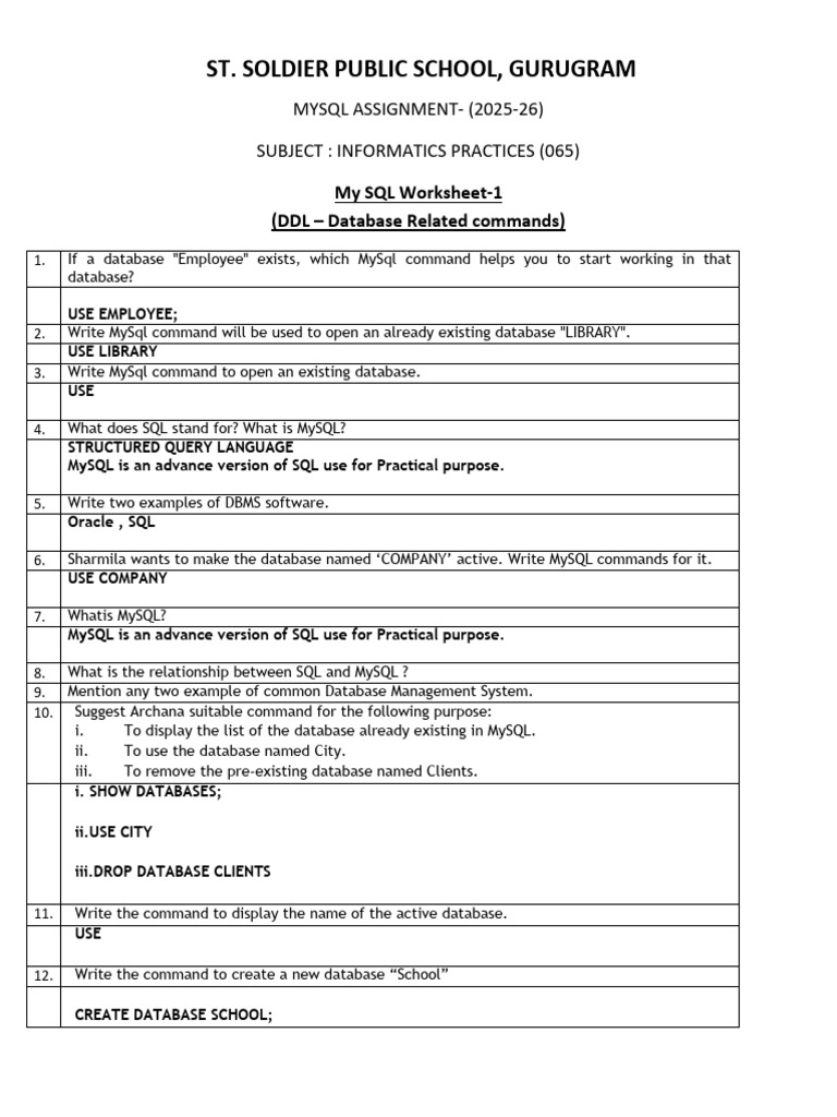 SQL Homework Class Xii (IP)