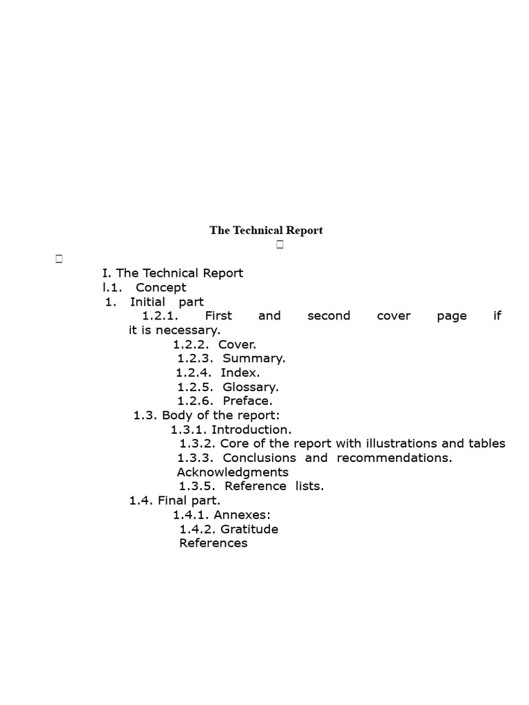 Every technical report must have a structure consisting of the introductory part, the bodies of the report, the