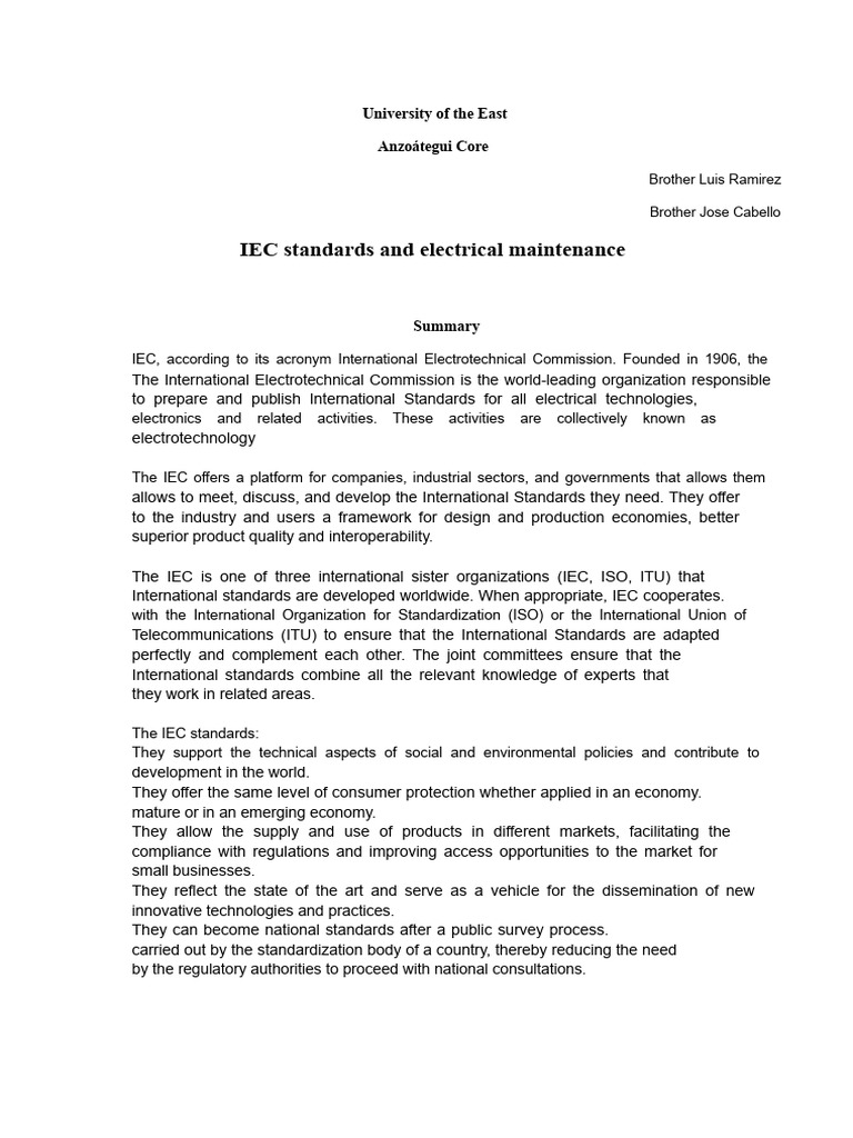 IEC standards and electrical maintenance