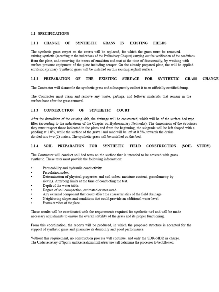The Contractor will conduct soil bed tests on the surface that is intended to be covered with grass.
