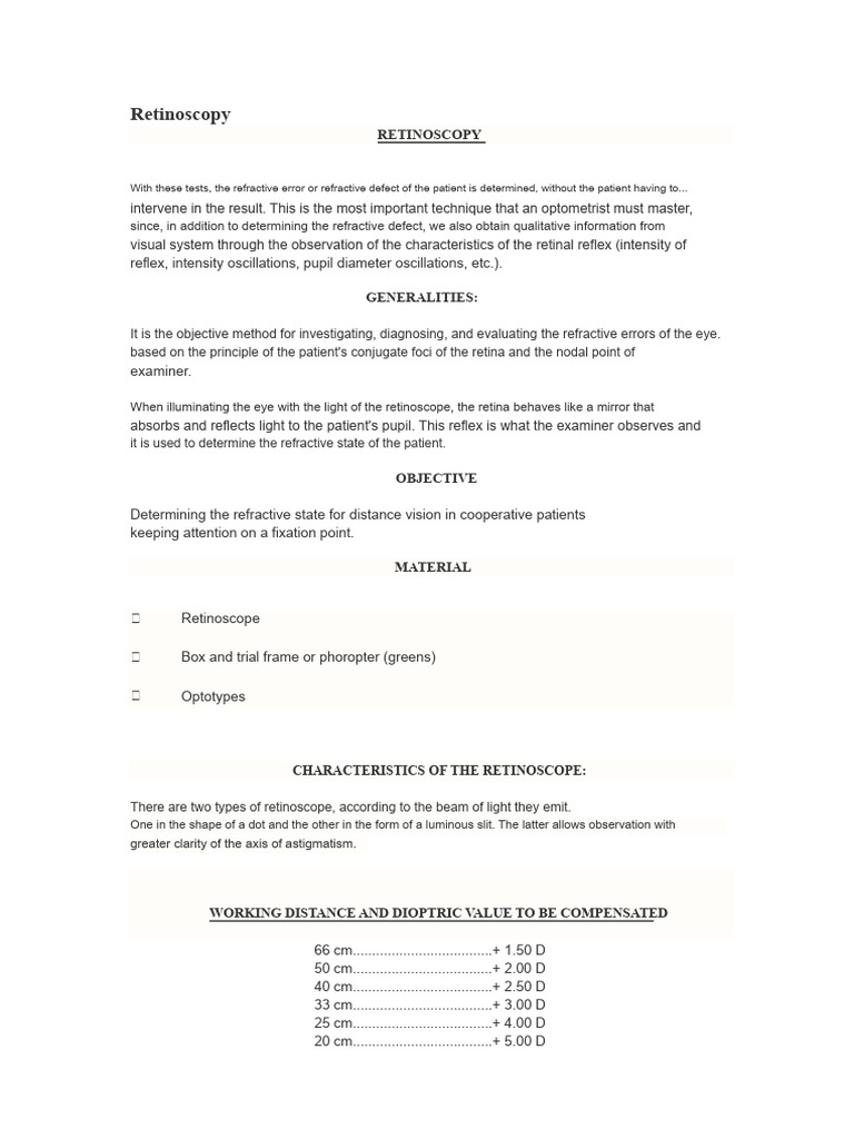 •The RL or retinoscope lens is a positive lens, whose diopter value is equal to the inverse of