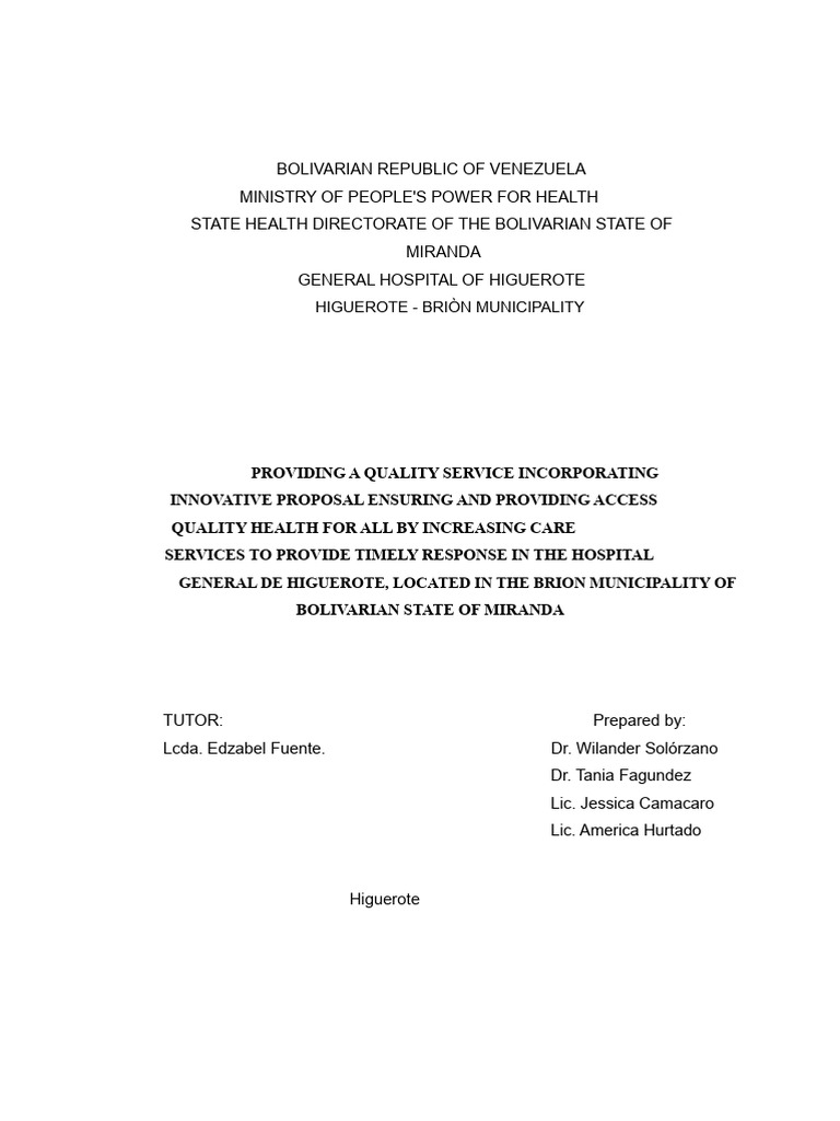 Therefore, the General Hospital of Higuerote must have a strategy