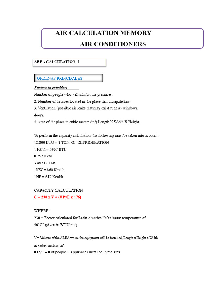 V = Volume of the AREA where the equipment will be installed, Length x Height x Width