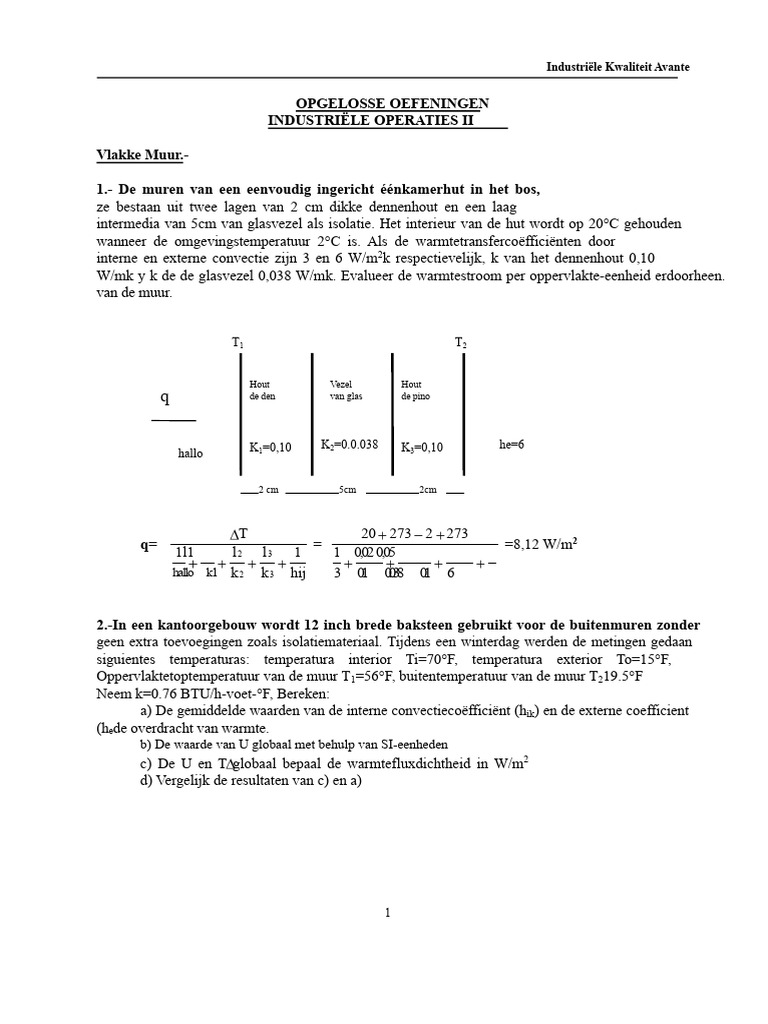 4.- De vlakke muur van een oven is gevormd door een binnenlaag van hittebestendige baksteen van 20 cm