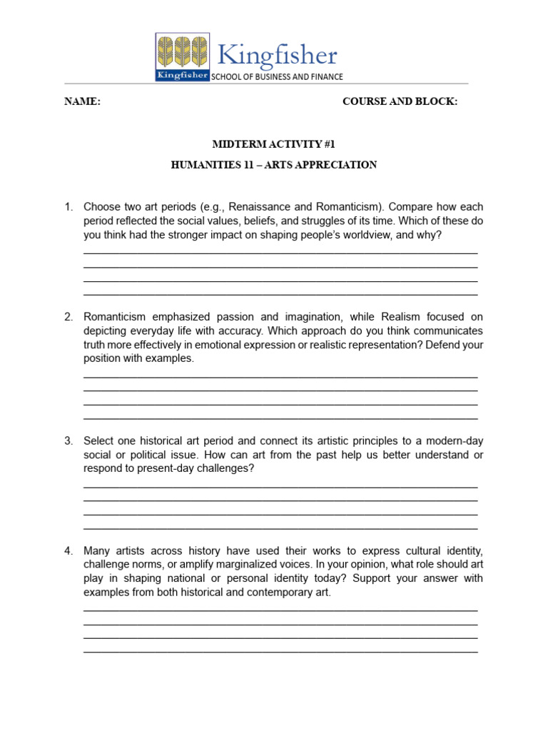 1. Choose two art periods (e.g., Renaissance and Romanticism). Compare how each