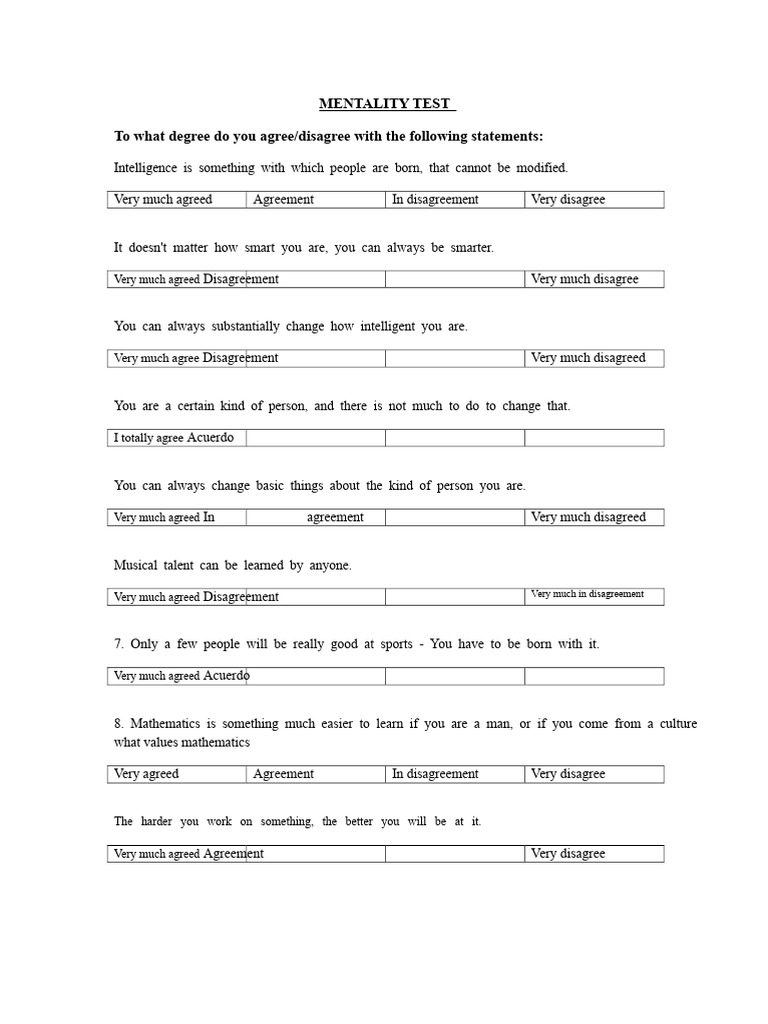 For example, if in the first question (Fixed skill mindset) you answered 'De