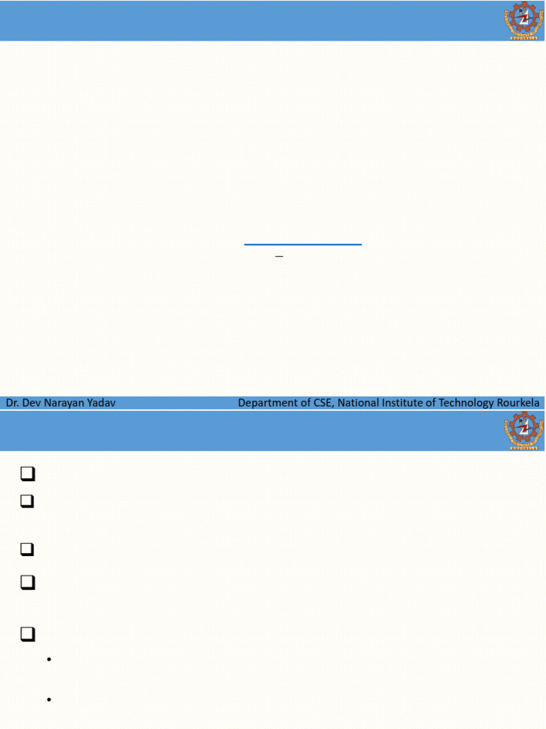 Dr. Dev Narayan Yadav Department of CSE, National Institute of Technology Rourkela