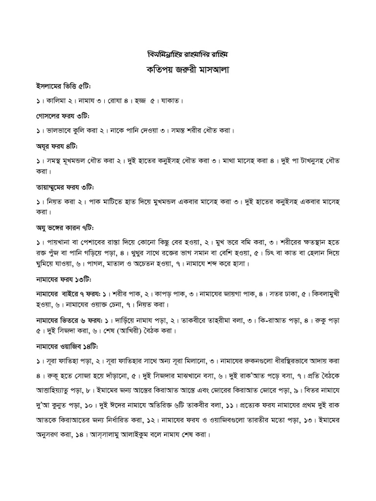 nvuwPi DËi †`Iqv, 15| wKejvi w`K n‡Z wmbv Ny‡i hvIqv, 16| bvgv‡h KziAvb kixd †`‡L cov, 17| Bgv‡gi