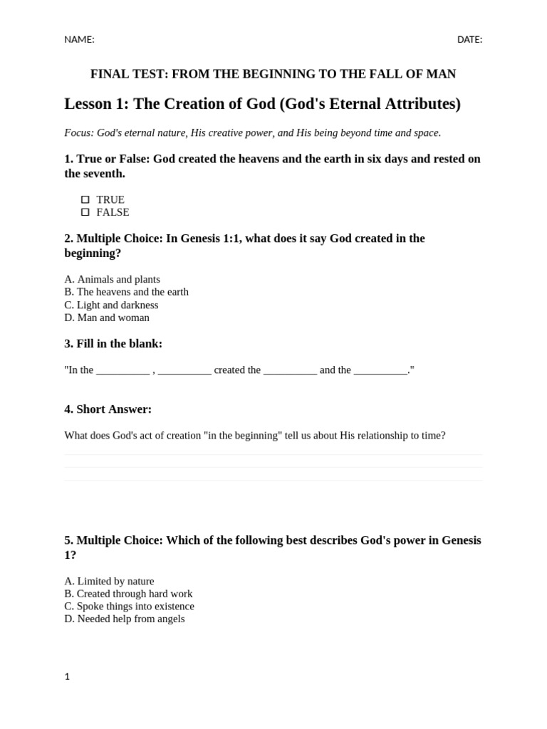 Lesson 1: The Creation of God (God's Eternal Attributes)