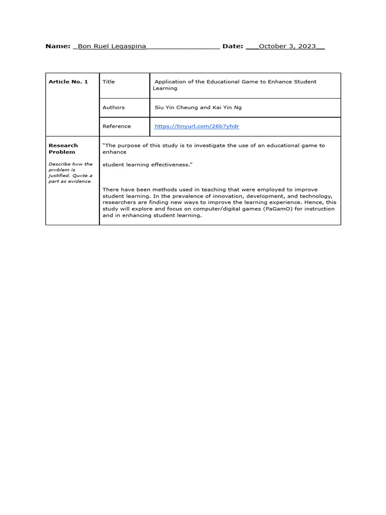Research ”The purpose of this study was to compare the effectiveness of the lecture and