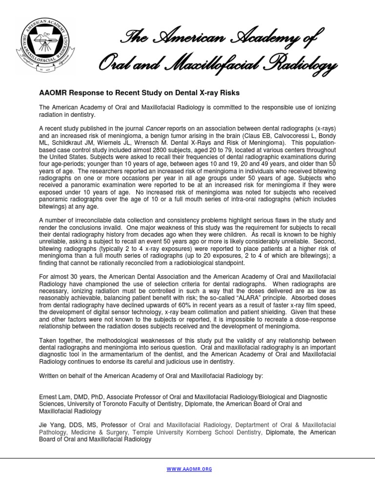 AAOMR Response to Recent Study on Dental X-ray Risks