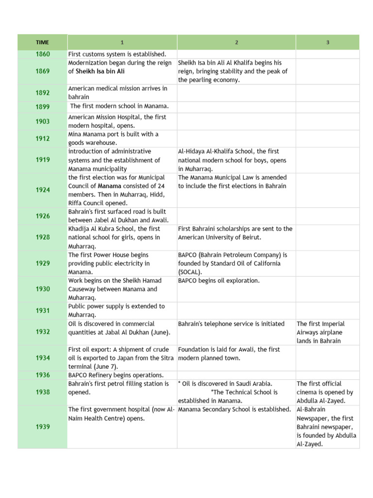 Oil is discovered in commercial Bahrain's telephone service is initiated The first Imperial