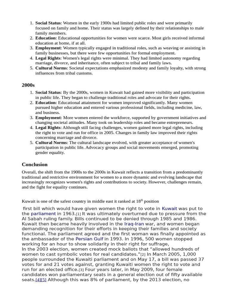1. Social Status: By the 2000s, women in Kuwait had gained more visibility and participation