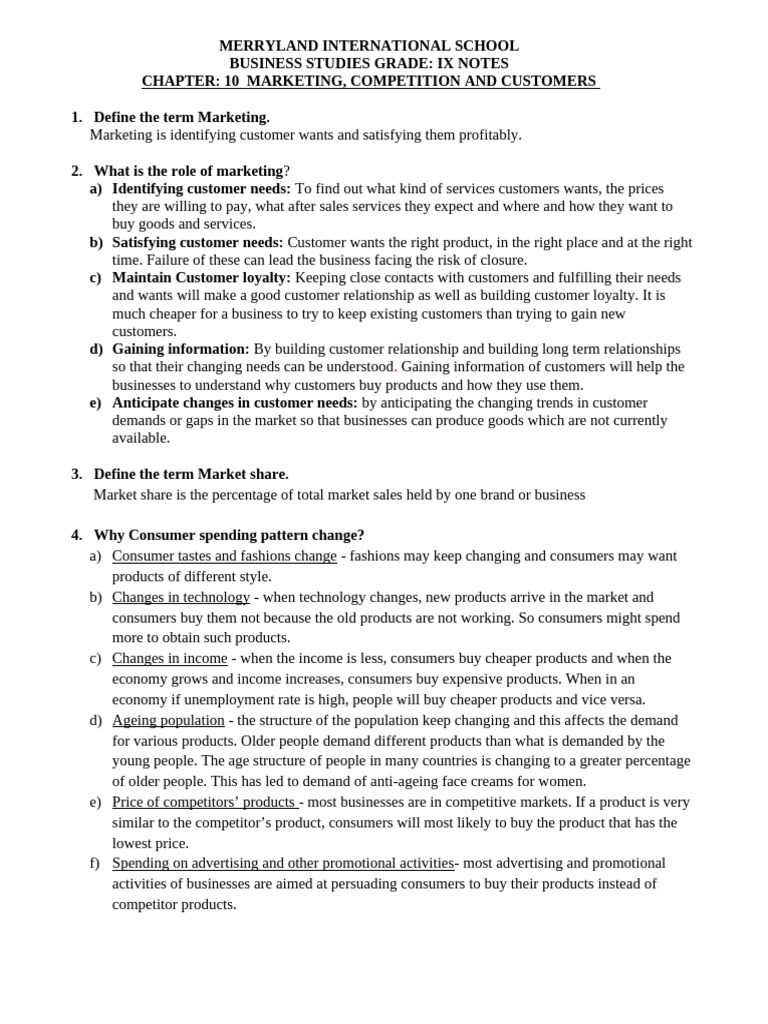 CHAPTER: 10 MARKETING, COMPETITION AND CUSTOMERS