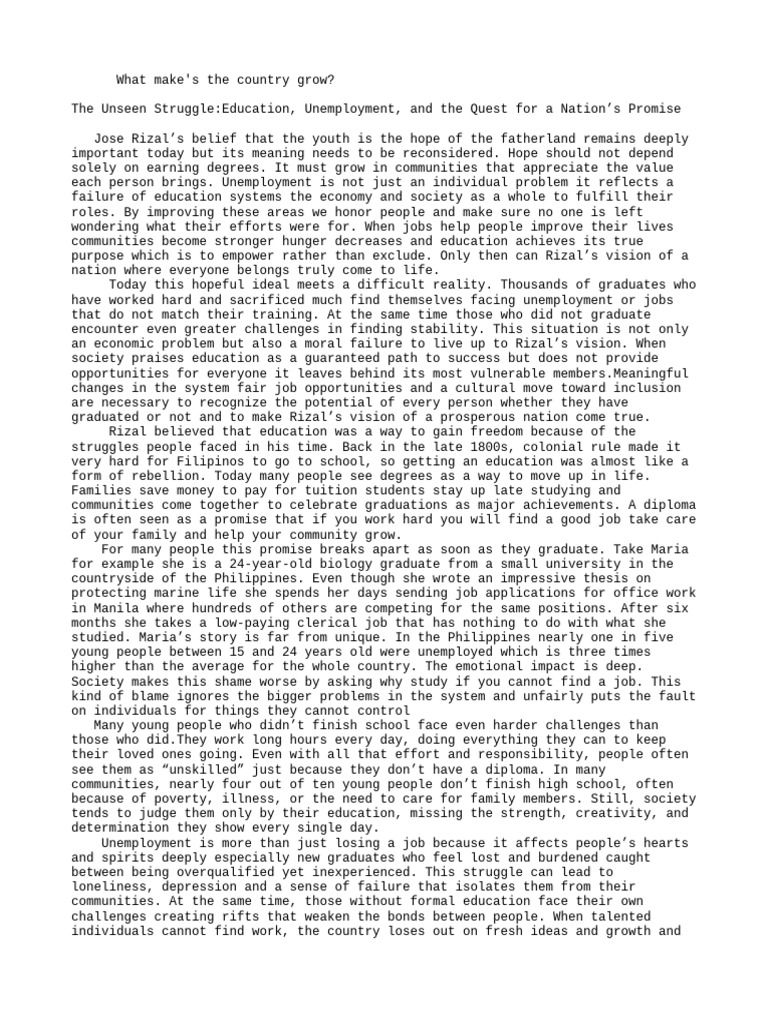 an economic problem but also a moral failure to live up to Rizal’s vision. When