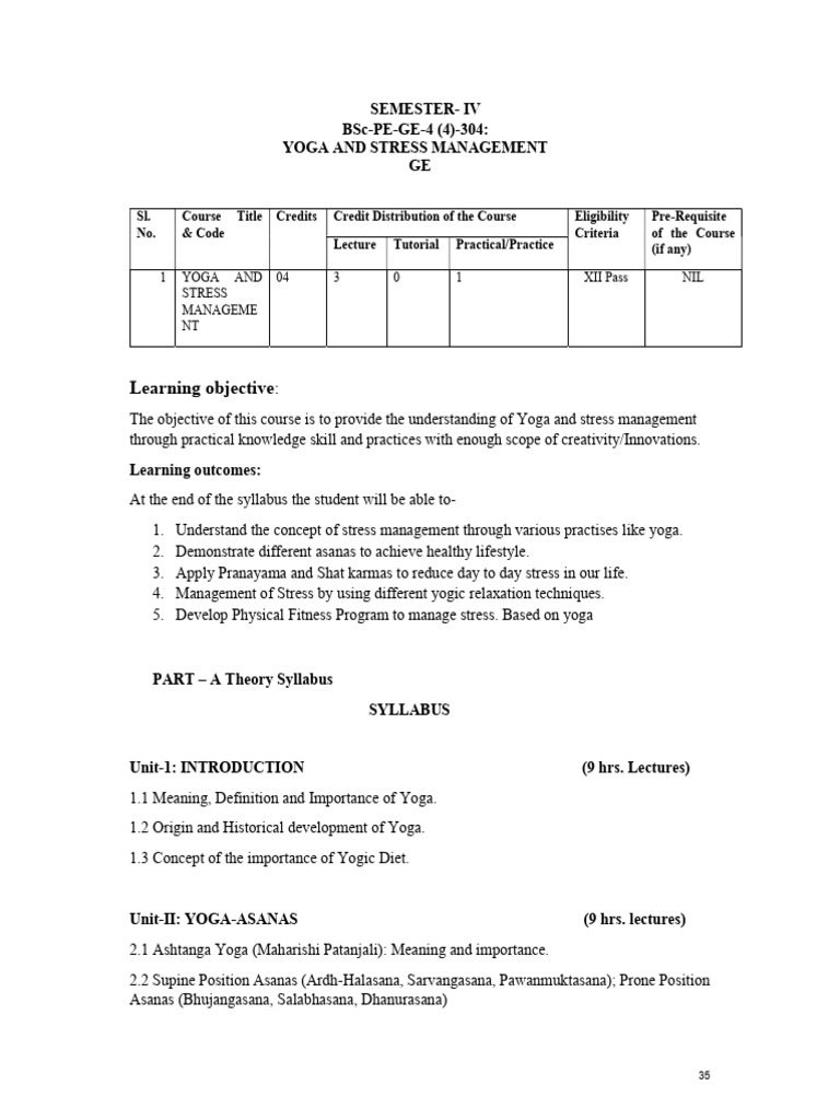 1 YOGA AND 04 3 0 1 XII Pass NIL