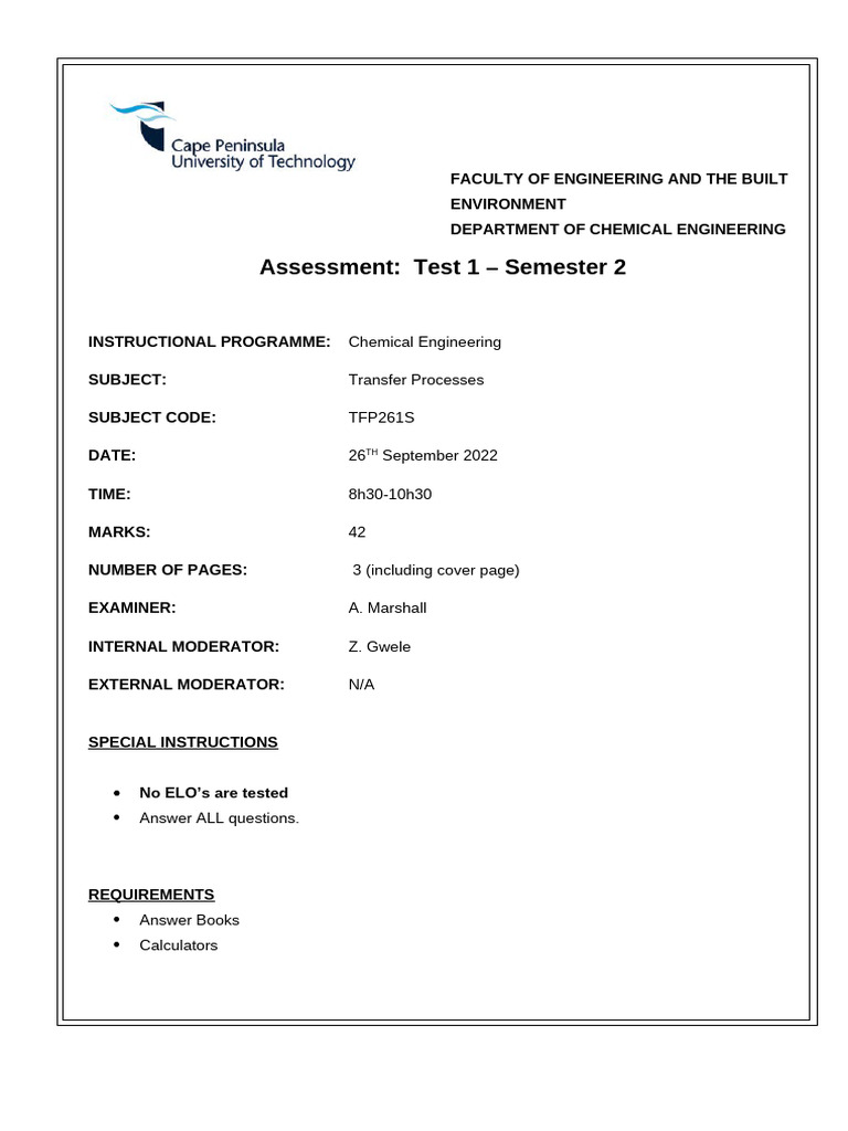 INSTRUCTIONAL PROGRAMME: Chemical Engineering