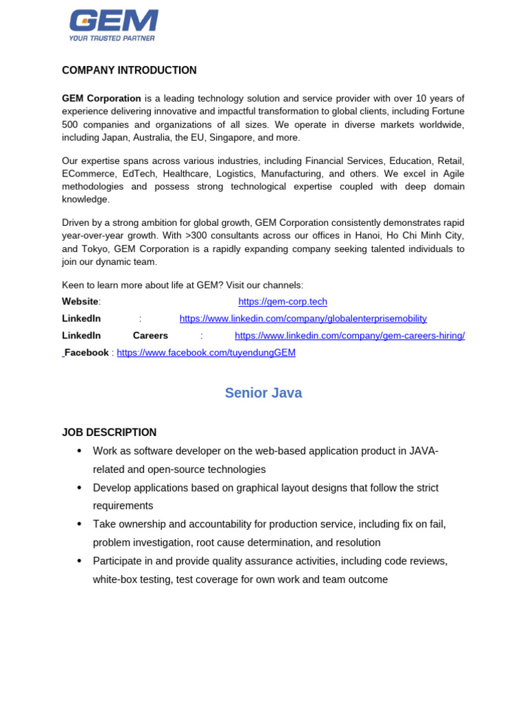 and Tokyo, GEM Corporation is a rapidly expanding company seeking talented individuals to