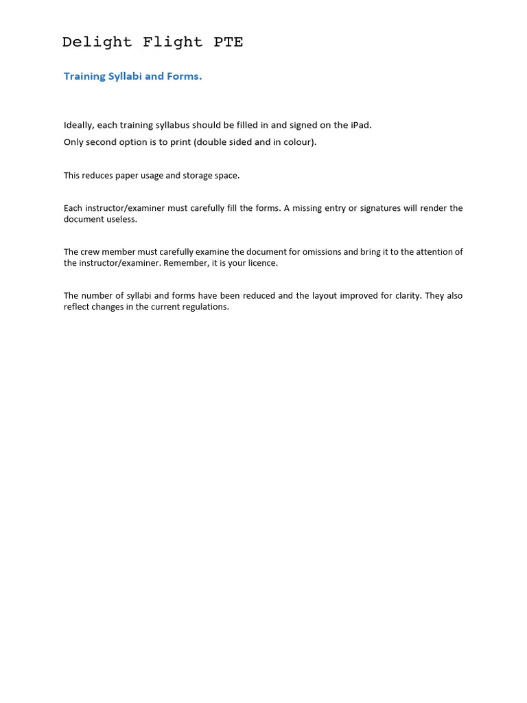 Ideally, each training syllabus should be filled in and signed on the iPad.