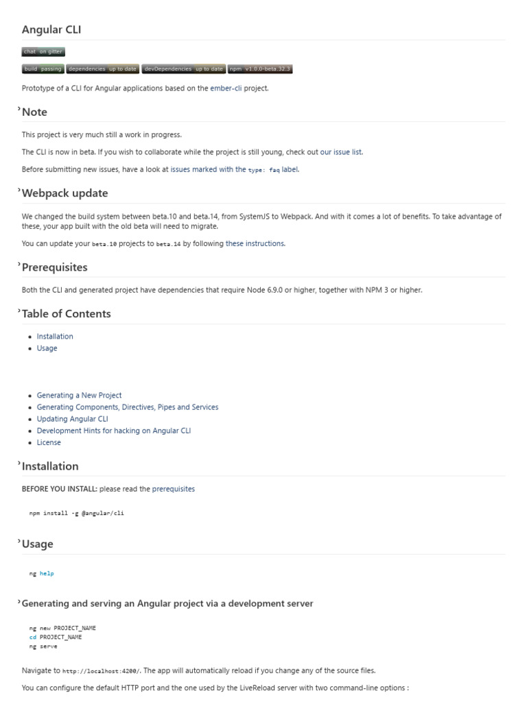 Both the CLI and generated project have dependencies that require Node 6.9.0 or higher, together with NPM 3 or higher.