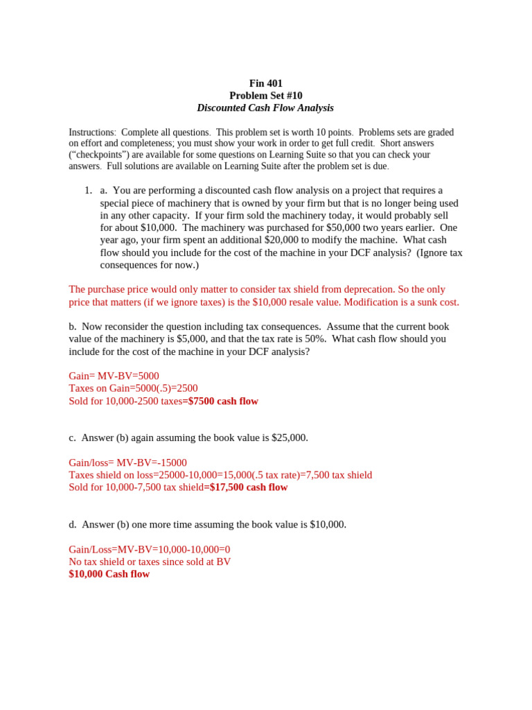 1. a. You are performing a discounted cash flow analysis on a project that requires a