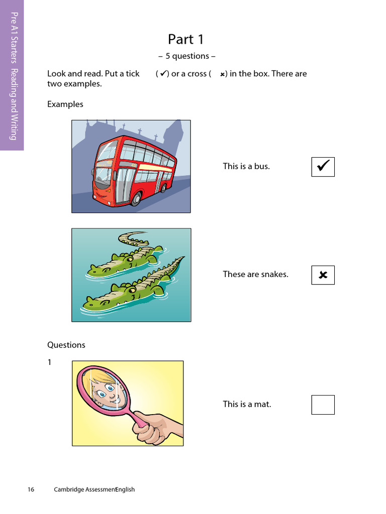 Look and read. Put a tick ( ) or a cross ( ) in the box. There are