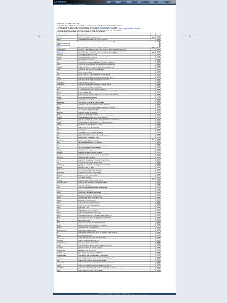 The following table is a list of linux commands found on a Redhat 9.0 server.