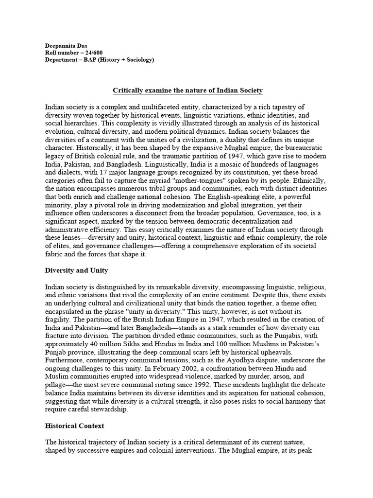 administrative efficiency. This essay critically examines the nature of Indian society through