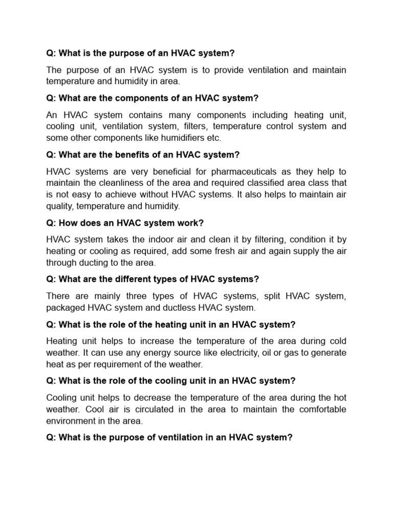 Q: What is the purpose of an HVAC system?