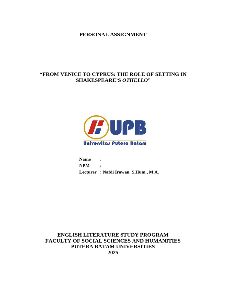 6.2 Final Thoughts on How Setting Enhances the Tragedy of Othello..............................................2